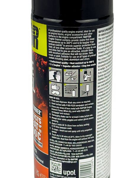 Профессиональная эмаль для двигателя, идеально подходит для использования на блоках двигателя и других поверхностях в моторном отсеке. Эмаль для двигателя RAPTOR содержит керамические смолы, которые выдерживают температуру до 300°C, и в 5 раз прочнее обычных эмалей. Обеспечивает превосходную защиту от нагрева, масла и других автомобильных жидкостей. Проста в использовании и быстро высыхает, образуя гладкую поверхность с превосходной адгезией, которая не будет пузыриться, шелушиться, трескаться или отслаиваться. Подходит для использования на всех типах загрунтованных металлов (сталь, алюминий и сплавы)