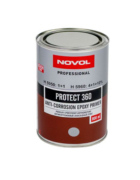 NOVOL PROTECT 360 эпоксидный антикоррозионный грунт обеспечивающий превосходную защиту стальных поверхностей благодаря высококачественным смолам и активным добавкам, предотвращающим коррозию. Предназначен как для обновления автомобилей, так и интенсивно используемых грузовых автомобилей и автобусов. Имеет очень хорошую адгезию с разными основаниями и превосходные изолирующие свойства. Может непосредственно покрываться поверхностными лаками, а также использоваться в системе мокро на мокро.