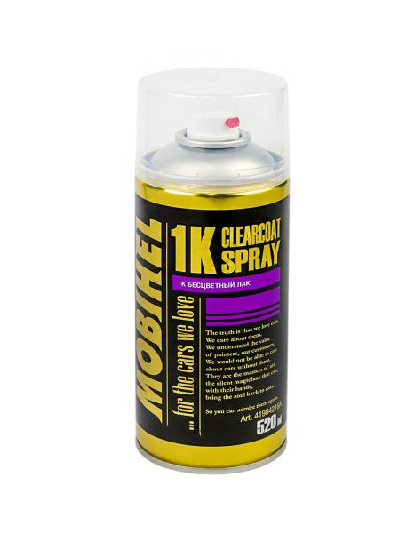 MOBIHEL 1K CLEARCOAT SPRAY высококачественный глянцевый прозрачный лак в аэрозольной упаковке для точечного ремонта. Объем: 520 мл.