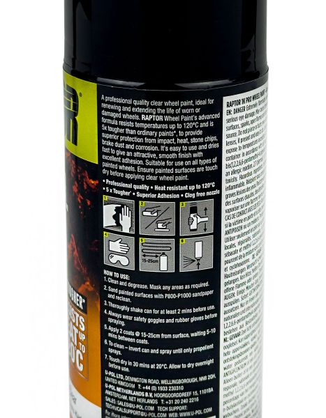 U-POL RAPTOR 120° лак для колесных дисков глянцевый аэрозольной упаковке. Объем 400 мл.