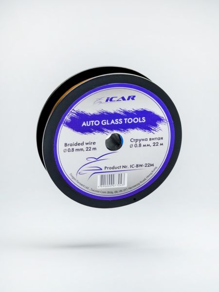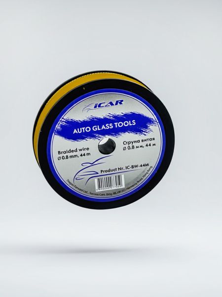 ICAR прочная и гибкая витая струна для разрезания слоя старого стекольного герметика и вырезки автомобильных стекол. Длина: 22м; 44м. Диаметр струны: 0,8 мм.