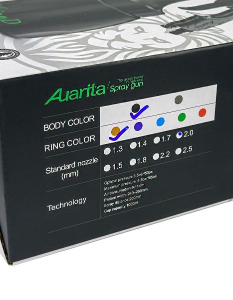 Auarita Краскопульт LION D 2.0 мм. нижний бачок пластик 1000 мл. /10 шт/ |