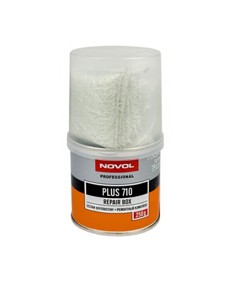 NOVOL PLUS ZR - ремонтный комплект состоит из полиэфирной смолы, отвердителя и стекломата. Получаемый из него стеклопластик обладает очень высокой механической прочностью, служит для заполнения значительных убытков материала (вызванных напр. коррозией), укрепляет и фиксирует металлические и пластмассовые поверхности. После затвердевания может шлифоваться и покрываться любыми полиэфирными шпатлёвками для получения соответствующей гладкой поверхности.