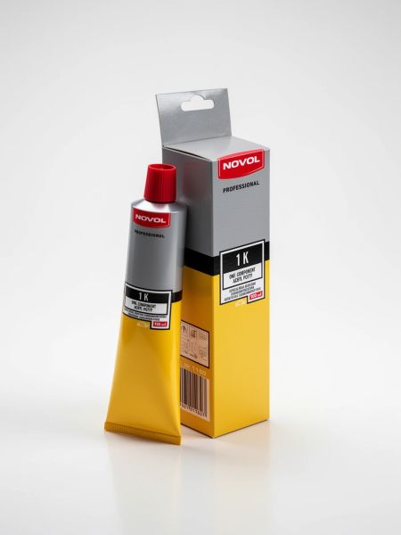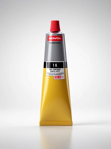 NOVOL 1К шпатлёвка однокомпонентная наносится шпателем. Включает один компонент – взвесь (пигменты и наполнитель в акриловой смоле). Шпатлёвка служит для заполнения неровностей и царапин на поверхности перед покрытием её краской. Может обрабатываться методом по сухому и по мокрому. Непосредственно на шпатлёвку можно наносить акриловую краску.