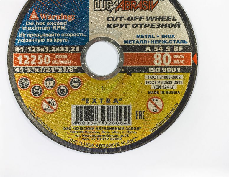 Диск отрезной 125 х 1,0 х 22 мм. арт. 3612-125-1,0 /25 шт./ |