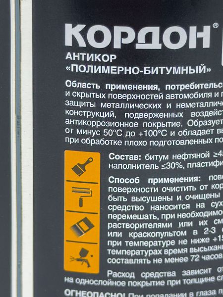 Мастика КОРДОН предназначена для наружных частей автомобиля в качестве защиты от коррозии и прочего воздействия окружающей среды.