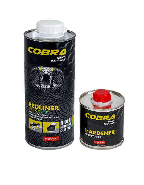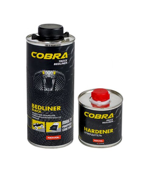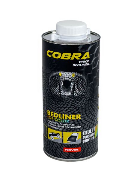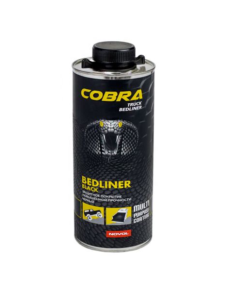 NOVOL COBRA Truck Bedliner - защитное покрытие со структурным эффектом на базе полиуретановых смол 2K. Отличается очень высокой механической прочностью и устойчивостью к царапинам. Защищает от влияния атмосферных факторов, бензина, масел, воды и соли. Обладает звукопоглощающими и глушащими свойствами. Структура поверхности придает противоскользящий эффект. В стандартном варианте производится черного цвета, в варианте под окраску позволяет получить любой цвет путем добавления 10-15% акриловой или базовой краски.