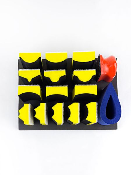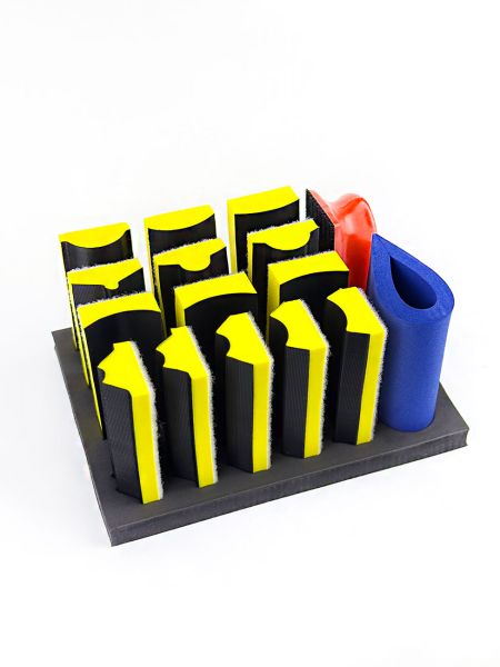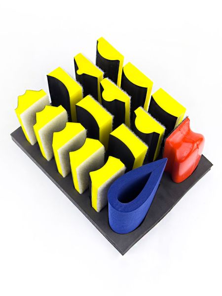 EVT набор шлифков разной формы на липе предназначены для обработки шпатлевок и ремонтных грунтов на округлых и вогнутых поверхностях.