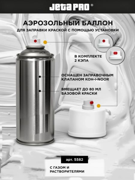 JETA PRO ПОЛУПРОДУКТ - аэрозольный баллон предназначенный для ручной заправки на специальных установках готовыми эмалями любых оттенков.