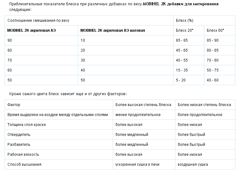 MOBIHEL HELIOS добавка для матирования (снижения глянца) MOBIHEL 2K акриловых эмалей и лаков. Максимальное количество добавки на общее количество эмалилака составляет 100%.