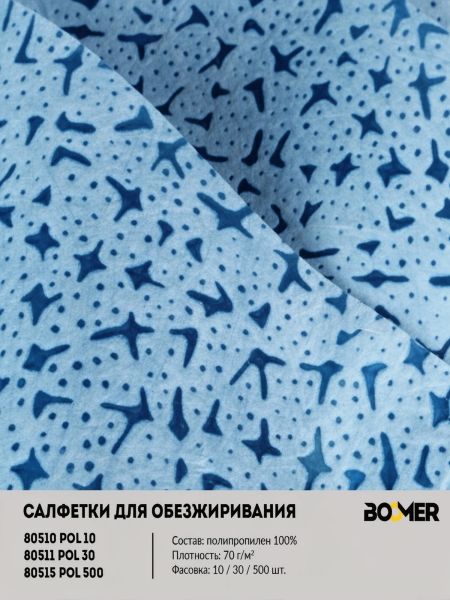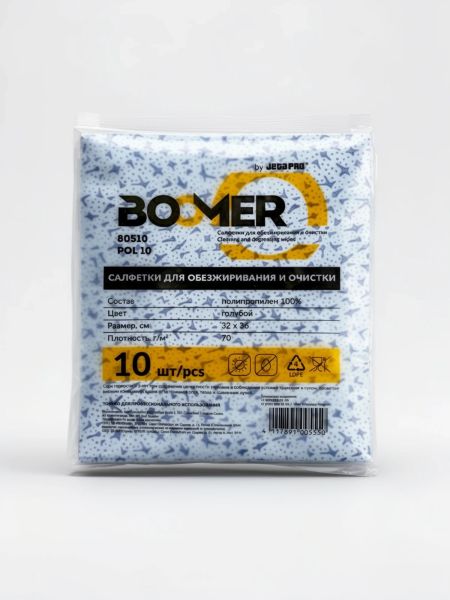 BOOMER 80510/1 W-POL 10 салфетки для обезжиривания предназначены для влажной очистки поверхностей с использованием очишающих и обезжиривающих составов.