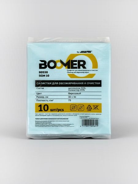 BOOMER 80530/1 SON 10 салфетки для обезжиривания предназначены для влажной и сухой очистки поверхностей с использованием очищающих и обезжиривающих составов.
