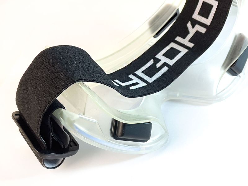 Панорамный обзор и защита, не запотевающее и устойчивое к истиранию и царапанию покрытие с обеих сторон. Мягкий корпус из ПВХ с широкой полосой обтюрации обеспечивает удобное, мягкое прилегание к лицу пользователя, снижает давление на лицо и утомление работающего. Регулируемая широкая наголовная лента надежно и удобно фиксирует очки на голове пользователя.