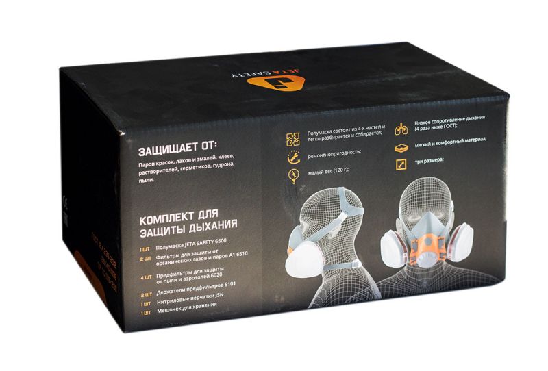 JETA PRO J-SET 6500 комплект для защиты дыхания с многоразовой защитной полумаской из мягкого силиконового материала, которая обеспечивает высокий уровень комфорта и надежную защиту.