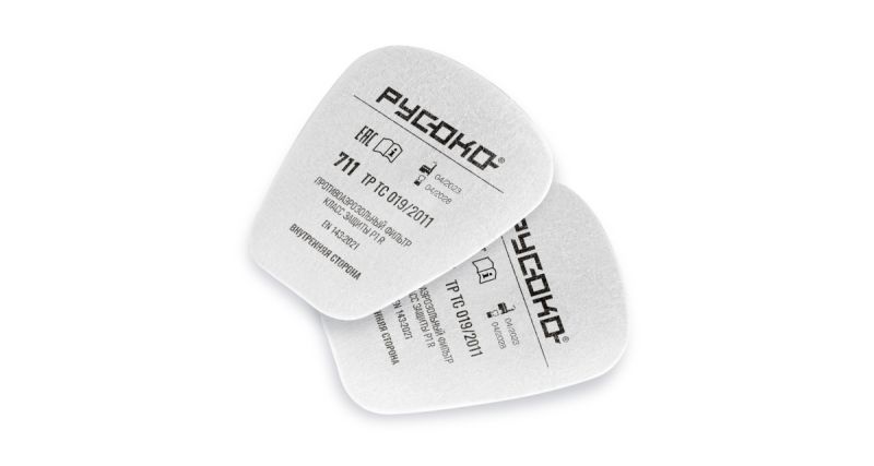 РУСОКО 711 cменные противоаэрозольные фильтры разработаны для использования в комплекте с противогазовыми фильтрами для полумасок и полнолицевых масок РУСОКО.